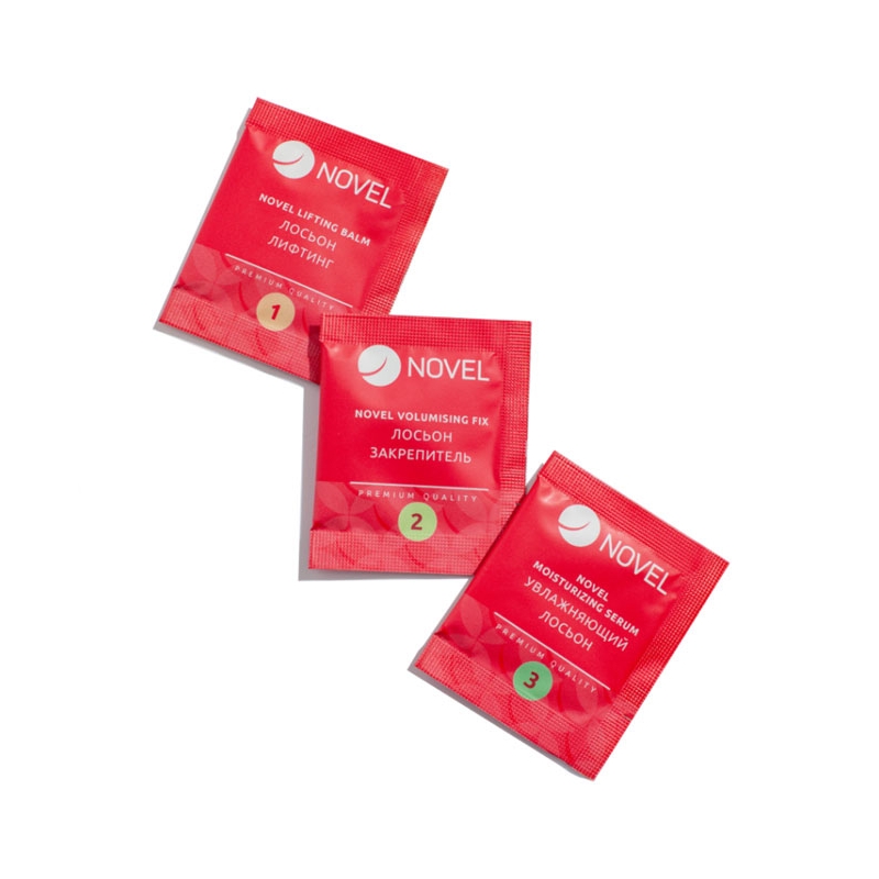 Setul promoțional Novel Lash UP Promo este un set promoțional de 3 pliculețe pentru laminarea genelor și sprâncenelor. Îmbogățite cu proteine de mătase, keratină hidrolizată și pantenol, aceste pliculețe oferă hidratare, restaurare și protecție genelor, adăugând o ondulare vibrantă și o strălucire sănătoasă. Ideal pentru testarea produselor Novel